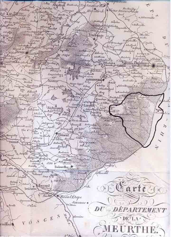 Exception faite du village d’ Engenthal qui fut rattaché au département du Bas-Rhin, canton de Wasselonne, les communes de l’ancien Comté de Dabo furent répartis de la façon suivante :
