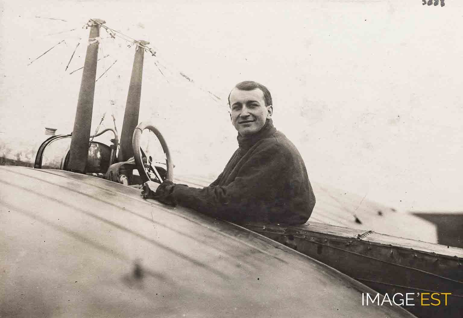 Il accomplit son premier grand vol chez Esnault-Pelterie, à Buc, le12 Juillet 1910 : il il évolua à 600 mètres d’altitude pendant 32 minutes. Il obtint son Brevet de Pilote le 19 Juillet suivant sous le Nème 141.