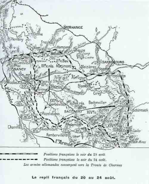La 2ème Armée du Général Dubail recula, abandonnat les territoires conquis en Alsace-Lorraine. Les Allemands occupèrent Lunéville et tentèrent sans succès de forcer la « Trouée de Charmes » qui leur aurrait permis d’encercler Nancy. Du 4 au 12 Septembre, la Bataille du Grand-Couronné arrêta l’avance allemande vers Nancy. Les lignes se figèrent et ala guerre de mouvement se transforma en guerre de positions jusqu’en 1918.
