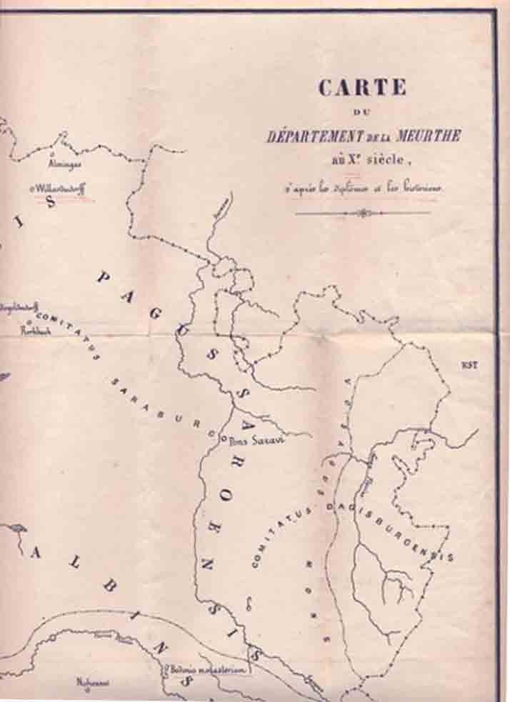 Au IV° siècle, l’Empereur Constantin divisa la Gaule en dix-sept provinces renfermant chacune plusieurs cités ou nations différentes (1) ; ces cités étaient divisées en districts, les pagi . Notre région se trouva dans le pagus saravensis superior ( bassin de la Sarre Supérieure), dépendant du diocèse de Metz.